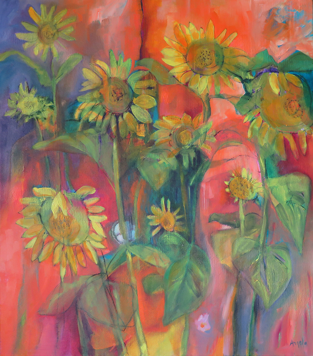 Rainbow Sunflowers oil on canvas 66cm X 76 cm